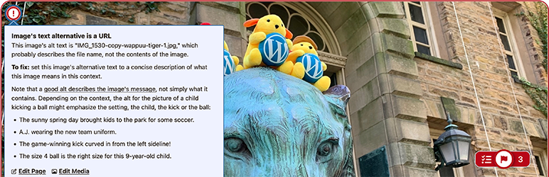 - Adds “Edit Media” link to the tooltips for alt text error messages (hat tip cbirdsong).